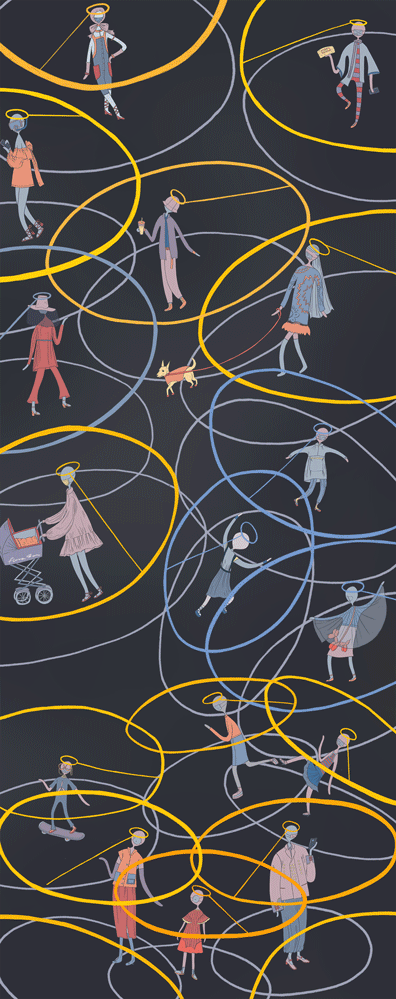 One day, everybody has a halo. It’s a circle, a way of practicing social distancing. The corona epidemic in 2020 is a huge lesson for us as human beings, it is also be a start for new relationship between human and nature.