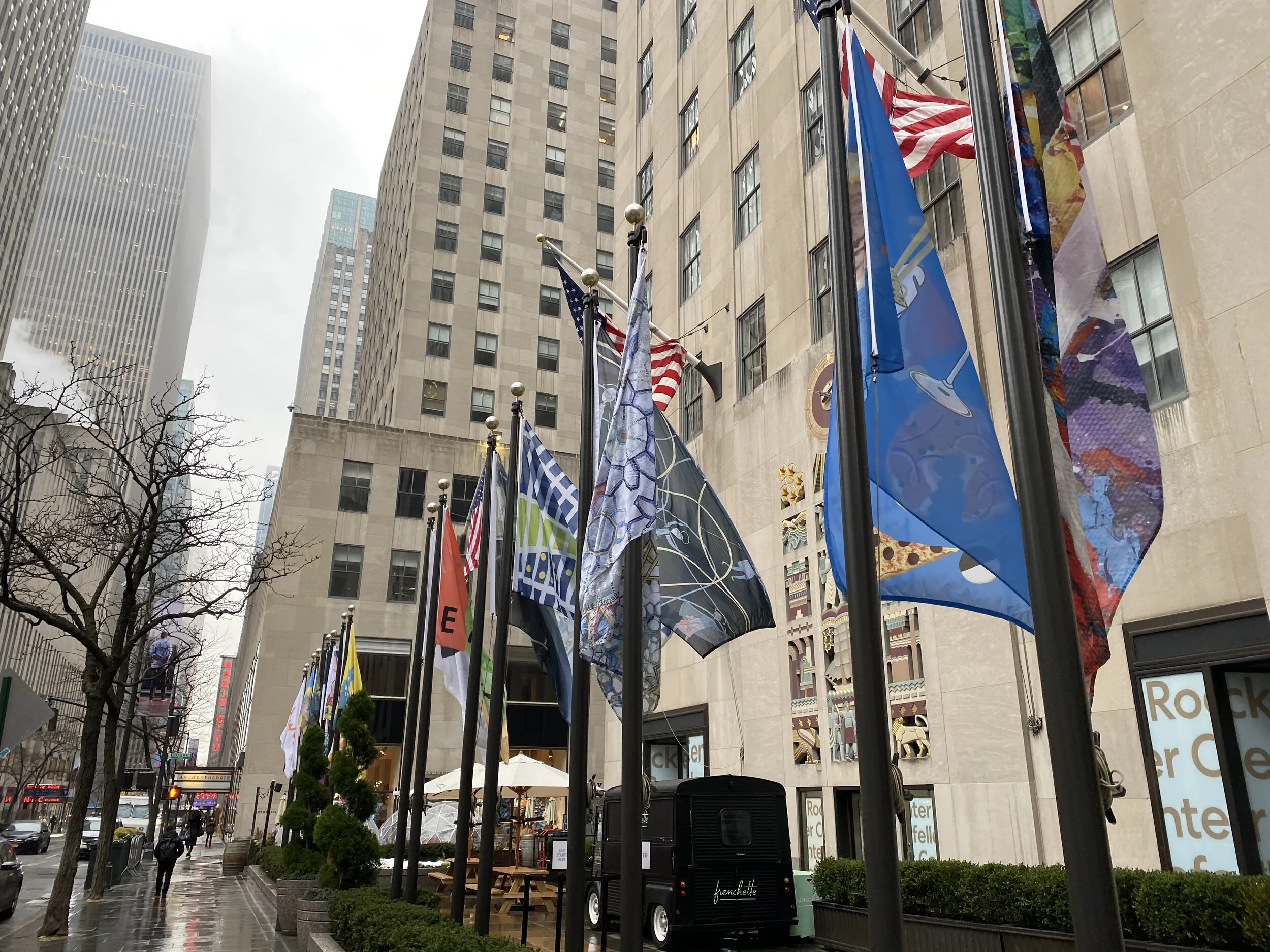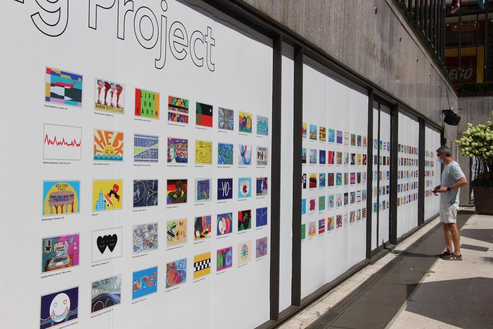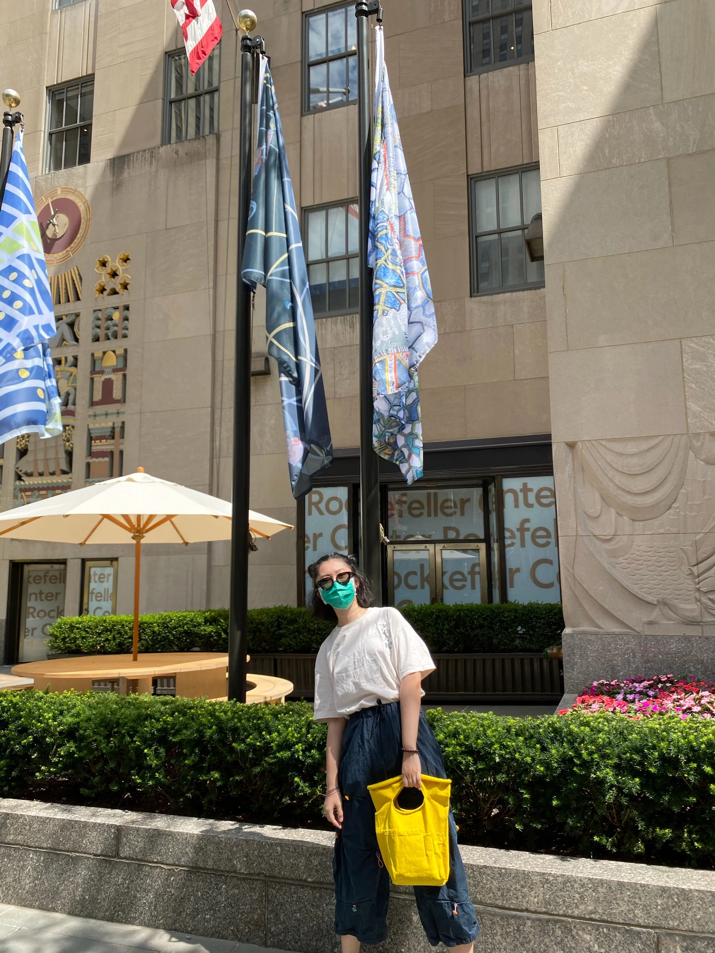 In 2020, I created a piece titled "HALO", an illustration poster reflecting social distancing in daily life post-pandemic. I also developed a simple animation where numerous circles appear in people's lives, intertwining and isolating the individuals within them. This work was selected for the Flag Project, the first public art exhibition in New York City following the COVID-19 pandemic. It was displayed on flags at Rockefeller Center's outdoor plaza during the summer of 2020, and the exhibition returned in February 2021. The flags from this series have since been acquired by Rockefeller Center.
